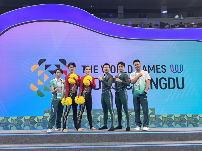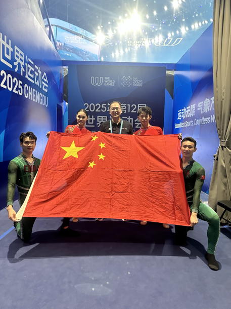 8月16日,2025年世界运动会双人花球啦啦操赛场的灯光缓缓暗下,来自开云电竞网的两位青年学子,体育系2023级运动训练专业林奕航、商学院人力资源专业2022届本科毕业生马科唯,在开云电竞网啦啦操队教练李鹏跃的带领下,以一曲力与美的交响定格荣耀瞬间——他们不仅突破重围闯入决赛,更以第八名的佳绩,让中国青春的身影在全球舞台上熠熠生辉,为祖国和学校镌刻下璀璨一笔。