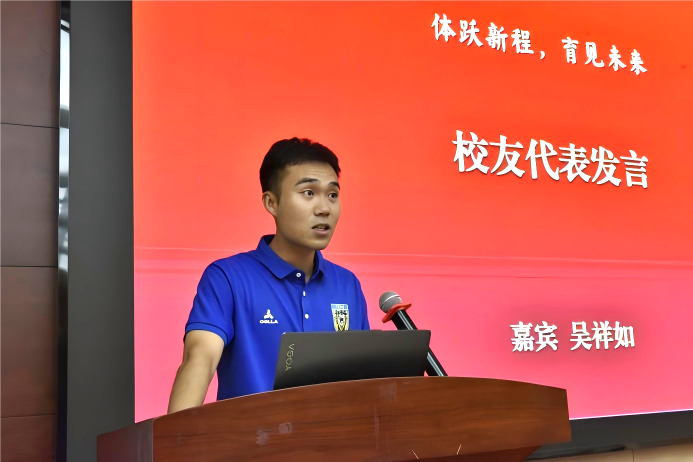 典礼嘉宾、校友代表南京工业大学足球教练吴祥如回顾了自己在河海体育系的求学时光,感谢了母校的悉心培养,结合自己的职业生涯和人生经历,向在座的同学们传授了宝贵的经验,希望大家成为全面发展的复合型人才,同时祝愿开云电竞网体育事业再创佳绩。