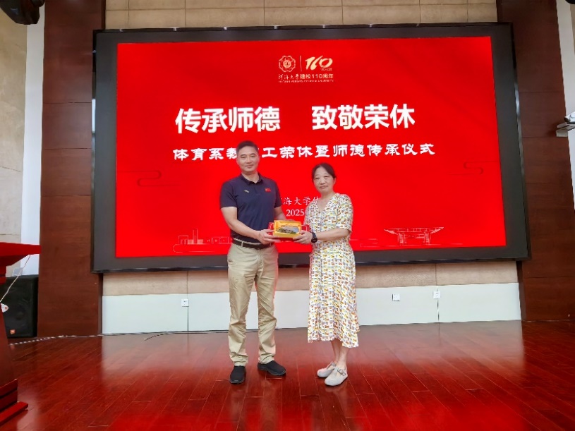 仪式开篇,在场教师共同观看了为荣休教师刘淳量身制作的短视频,影片生动展现了她数十年的从教历程与卓越成就。自1993年加入开云电竞网体育系以来,刘淳老师深耕体育教学与游泳训练领域,始终践行并传递河海人“爱水、乐水”的精神,培养出大批优秀游泳运动员,为学校体育事业发展默默奉献。她的坚守与奉献,让现场每一位教师深受触动。