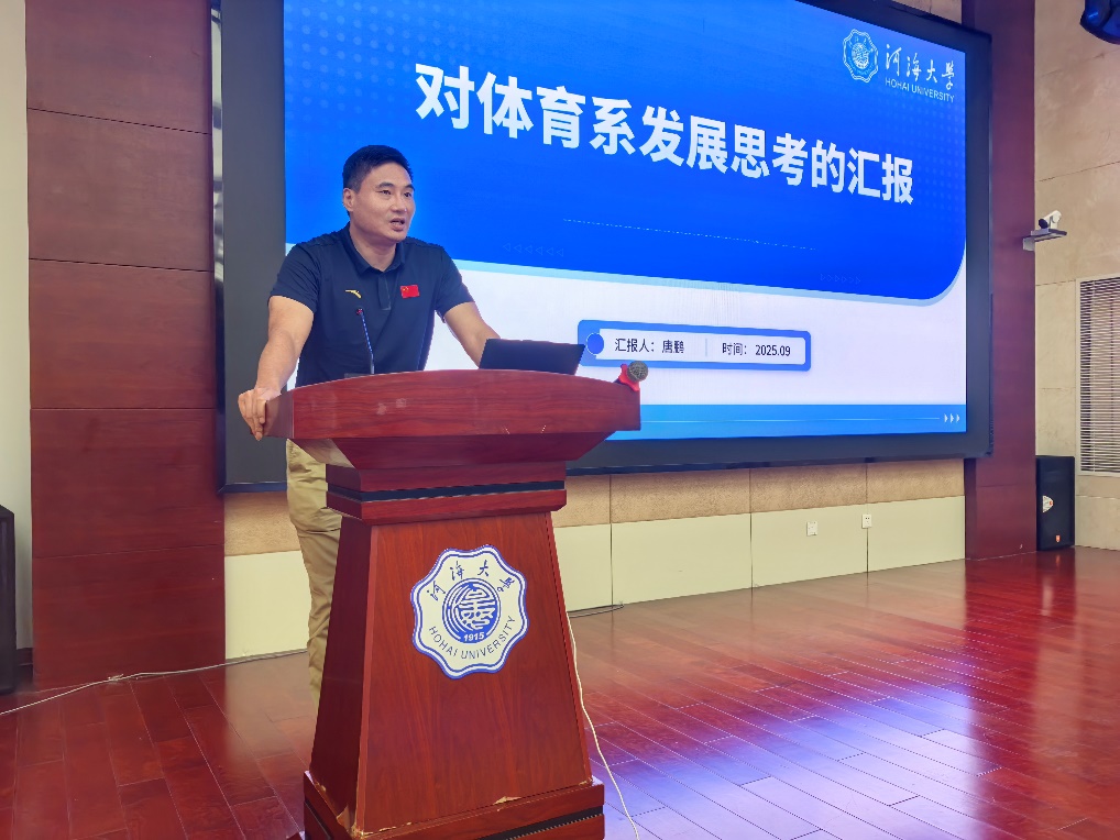 系主任唐鹏围绕体育系未来发展展开阐述,深入分析当前面临的机遇与挑战,解读后续工作任务与目标。他提出以“体健工程”为重要抓手,号召全体教职工积极投身。