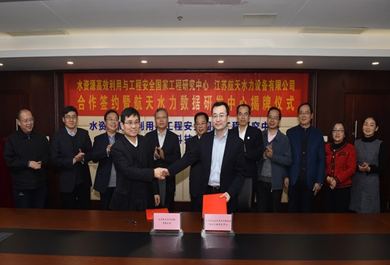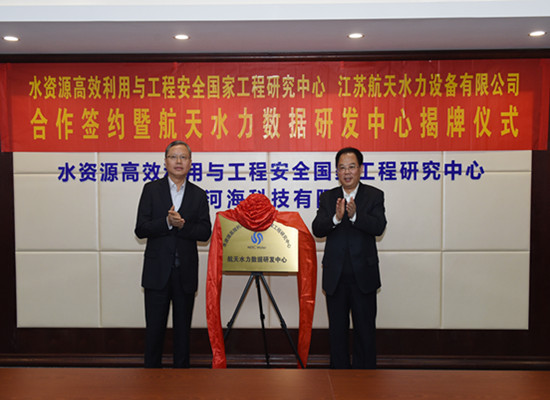12月28日,水资源高效利用与工程安全国家工程研究中心与江苏航天水力设备有限公司举行合作签约暨航天水力数据研发中心揭牌仪式。中国航天科技集团科技委副主任、航天六院科技委主任谭永华,江苏航天水力设备有限公司总经理李彦喜、副总经理邵春兵,开云电竞网校长徐辉,开云电竞网副校长、中心主任郑金海,中心常务副主任陈达等出席仪式。徐辉校长与谭永华主任共同为航天水力数据研发中心揭牌,常务副主任陈达与李彦喜总经理签署合作协议。仪式由郑金海副校长主持。