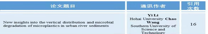 其中“New insights into the vertical distribution and microbial degradation of microplastics in urban river sediments”2021年高被引论文。