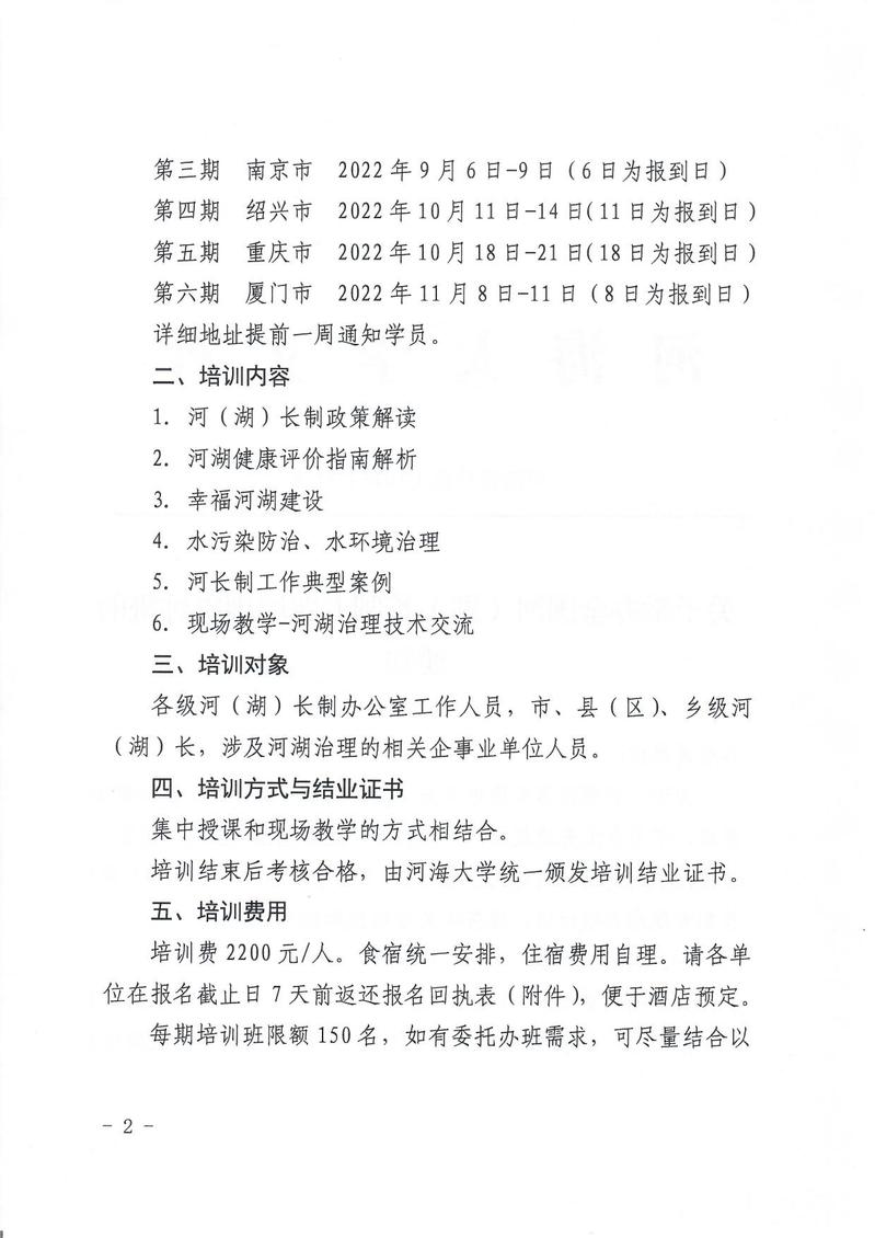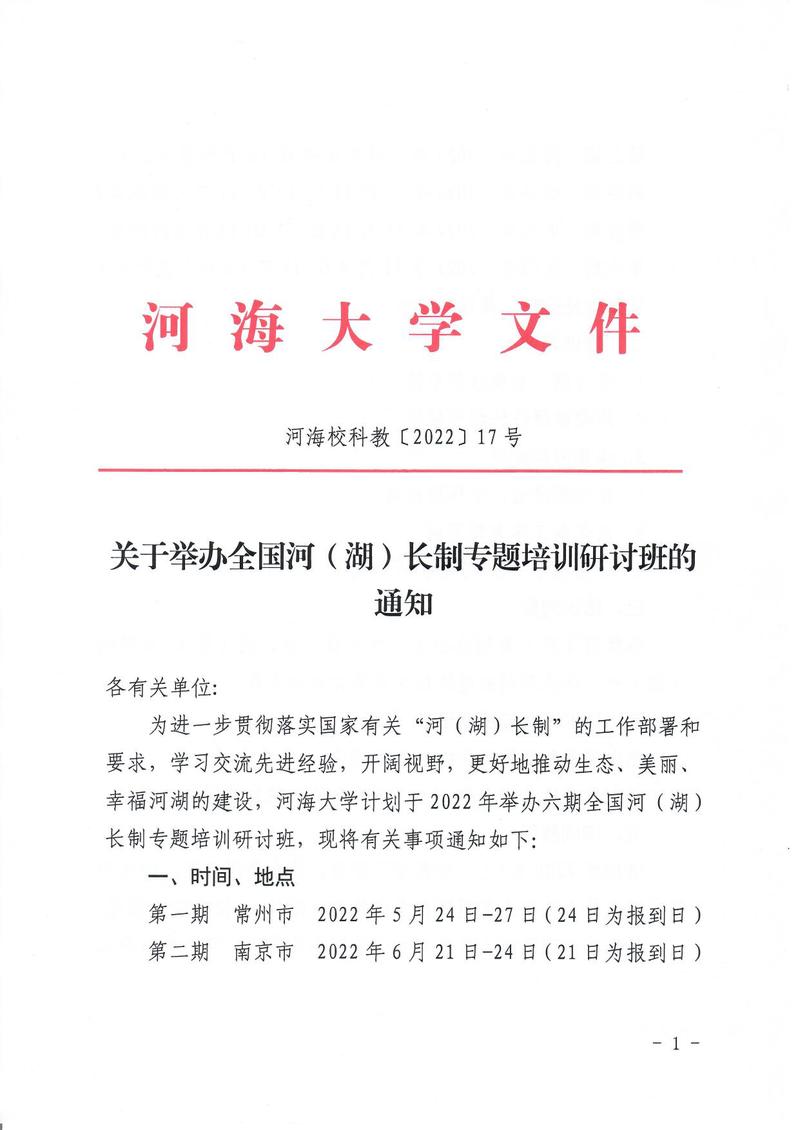 关于举办全国河(湖)长制专题培训研讨班的通知