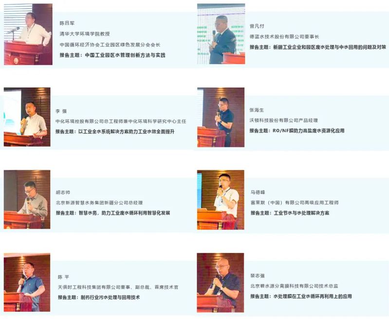 下午部分为工业企业、园区水效提升技术交流会,来自清华大学、德蓝水技术股份有限公司、中化环境控股有限公司、沃顿科技股份有限公司、北京新源智慧水务集团新疆分公司、赛莱默(中国)有限公司、天俱时工程科技集团有限公司、北京碧水源分离膜科技有限公司等企业专家围绕工业园区废水循环利用、高盐废水资源化应用等先进节水技术及应用案例作了交流。