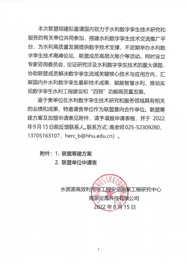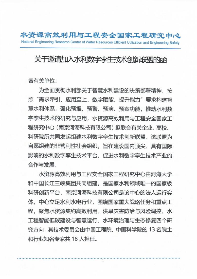 关于邀请加入水利数字孪生技术创新联盟的函