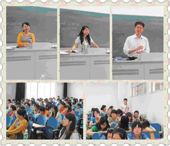 2013年5月29日14时30分,外国语学院2012级年级大会暨师生面对面交流会在江宁校区致用楼118举行。参加此次经验交流会的有外国语学院杨荣华副院长,优秀教师袁一平老师,优秀青年教师王茜老师,外国语学院2012级辅导员华晨晨老师以及2012级全体同学。