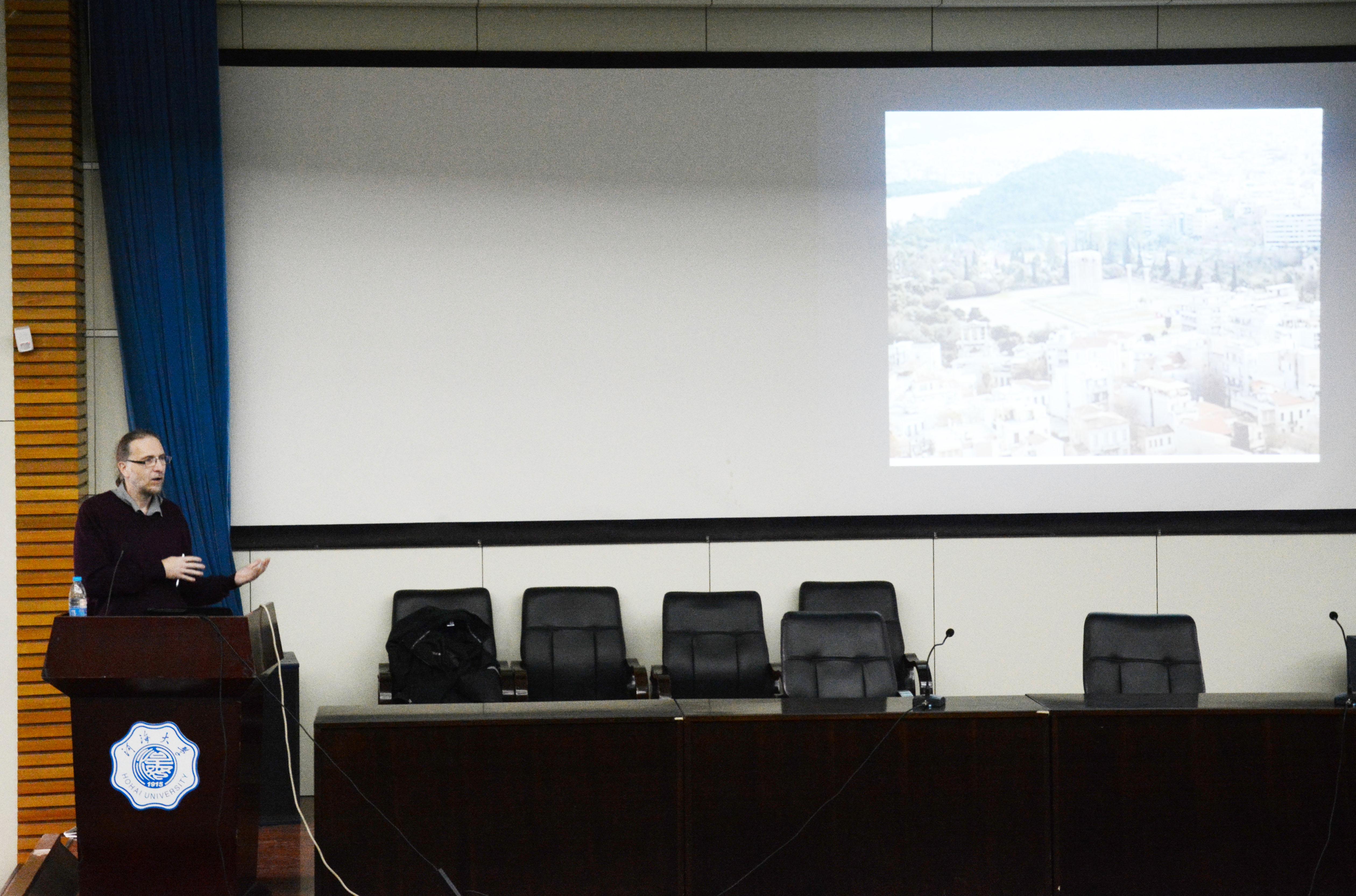首先,Hajdu教授从城市面貌传达出的意识形态切入,言简意赅,条理清晰。通过对于历史时期的举例讲解将抽象的概念形象化,便于同学们理解。Hajdu教授提到了关于城市的文学表达。主要介绍了欧美文学史上有里程碑意义的名家大作,包括狄更斯,乔伊斯这些中国读者耳熟能详的作者,并分析了其作品的核心内容和历史意义,层层深入,引人思考。城市,作家与文学息息相关,密不可分,城市衍生作家,而作家以文学铭记城市。随后,Hajdu教授向大家介绍了文学地图,一定程度上来说就是城市进化的缩影。同时展示一些城市知名雕塑、纪念碑的精美图片,从而让与会人员感受到了历史文化与现代艺术的完美融合。此外,Hajdu教授还讲解了文学对于城市风貌的影响。现代人们通过诗歌,雕塑等方式发展文学,而文学的发扬其实也是一代代人对于正义,勇敢,责任这些优秀品质的宣扬和传承。