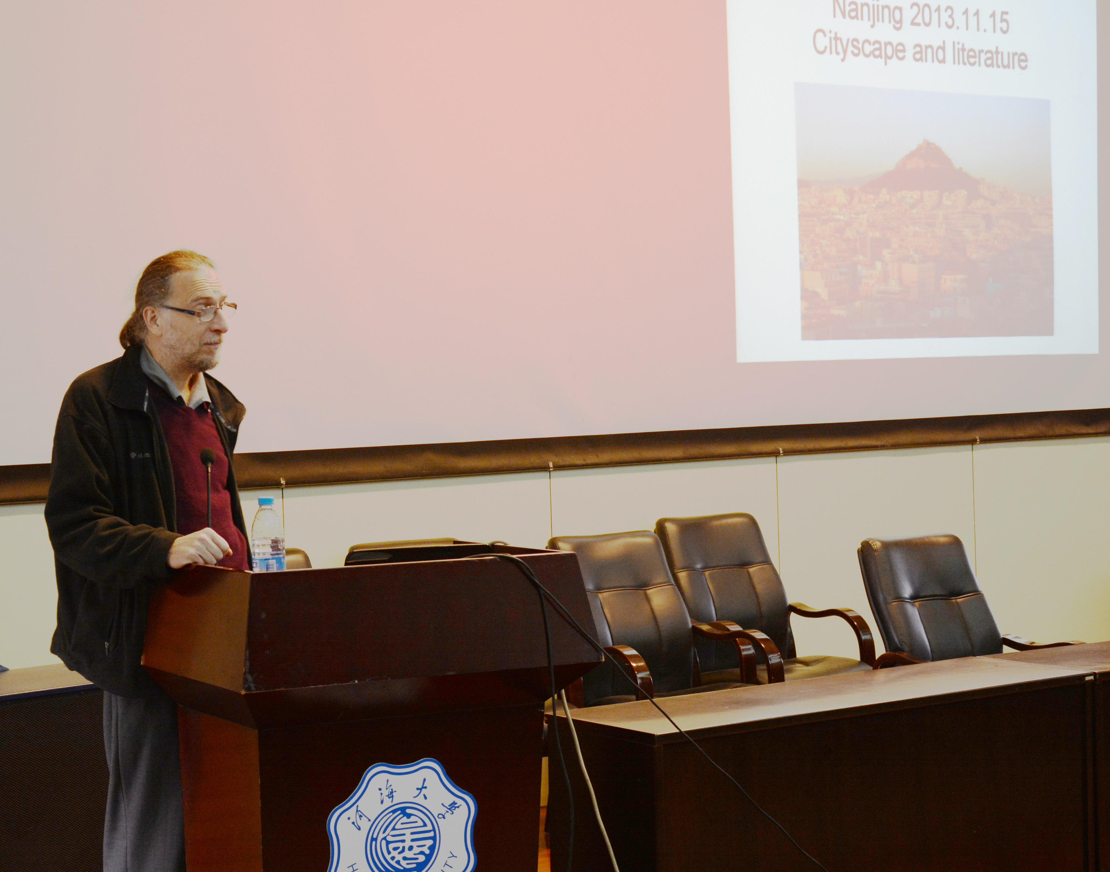 2013年11月15日下午三点,应我院主持行政工作的副院长蔡斌教授邀请,SSCI期刊《世界比较文学》主编、匈牙利科学院人文学科研究中心Peter Hajdu教授在江宁会议中心为外国语学院全体师生做专题讲座“Cityscape and Literature”,学院副院长杜辉教授主持讲座。