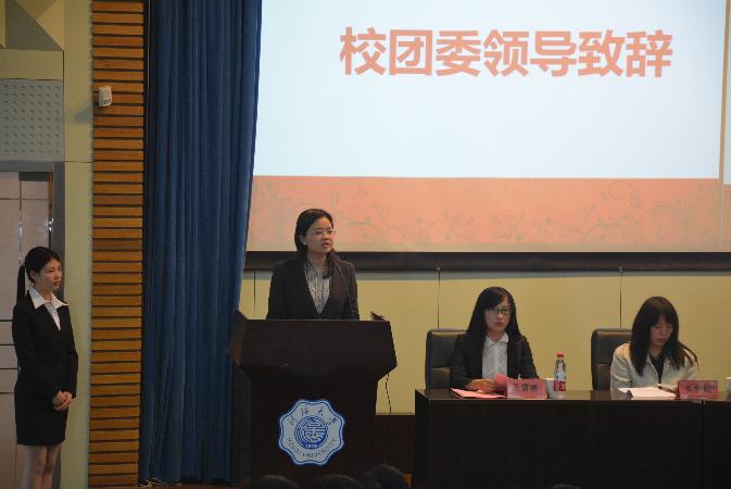 大会在庄严的国歌声中拉开帷幕。首先,校团委吴红书记致辞,对我院学生组织在过去所取得的工作成绩表示充分的肯定。吴书记谈到,外国语学院学生组织是我校校园文化建设中的一道亮丽风景线,组织建设、社会实践、校园文化和志愿服务等工作都取得了长足的进步和显著的成绩,希望广大青年学生能够珍惜大学时光,抓住每一次学习和锻炼的机会,不断完善自己,成为综合素质高的优秀大学生。