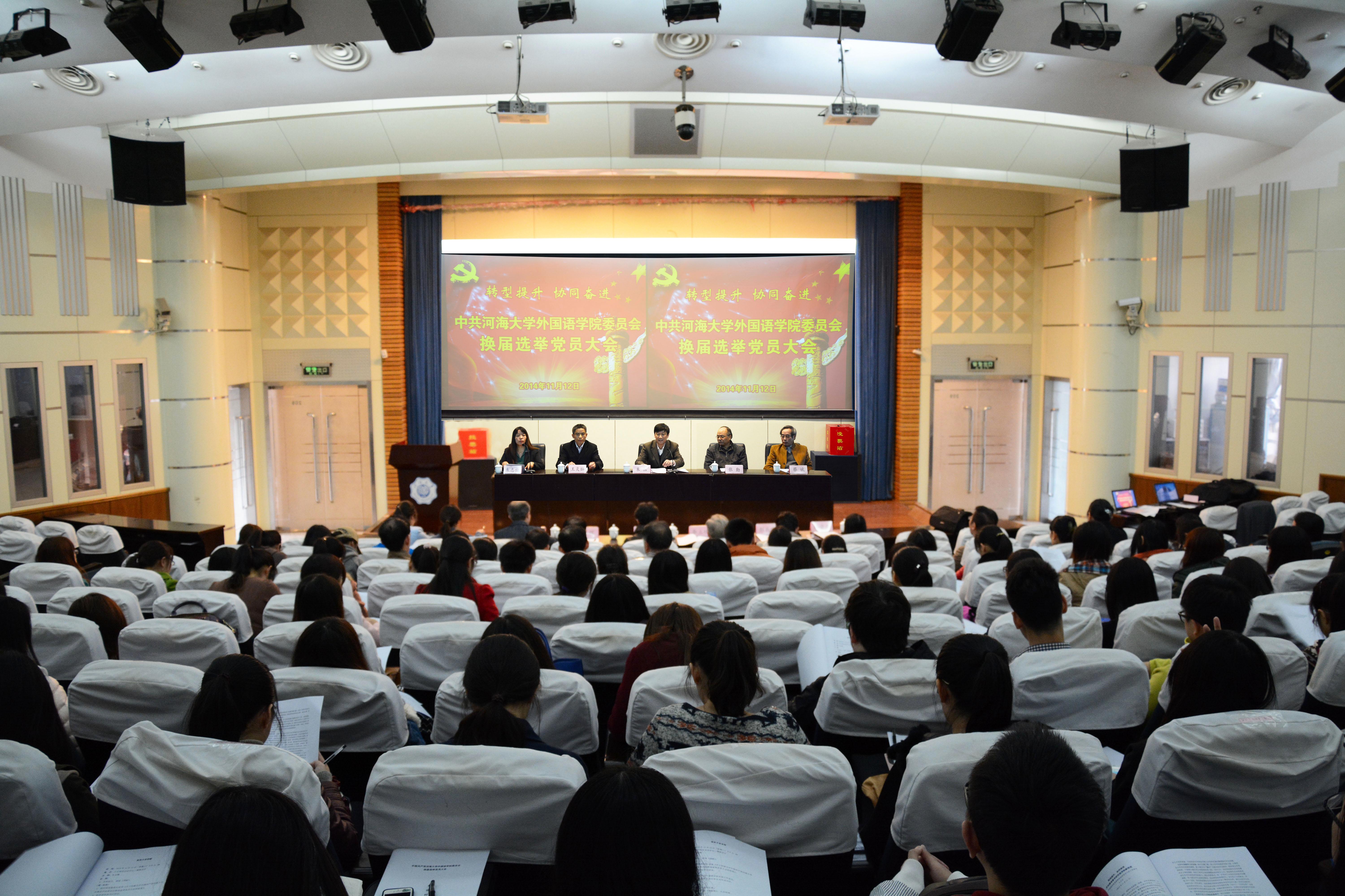 11月12日,外国语学院在江宁校区会议中心二楼报告厅召开党委换届选举党员大会。校党委朱拓书记、校党委组织部张勤部长出席会议的开幕式。会议由学院党委朱志梅副书记主持。学院老领导、退休教职工代表和民主党派教职工代表等受邀列席了会议。