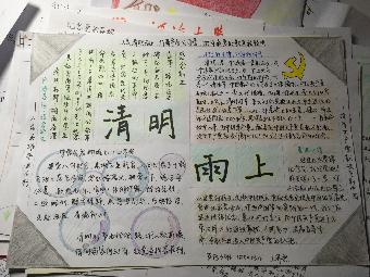 团委紧紧围绕“清明祭英烈·共铸雨花魂”主题,还组织开展线下纪念活动-手绘简报。参与同学精心构思,用心感悟,绘出了“聚焦十八大,共筑中国梦”、“党在我心”、“清明公祭,党魂永存”、“万山红遍”、“与党同行”等主题手抄报。国家不能没有历史,社会不能没有记忆。在制作手抄报的过程中,同学们增强了对党的认识,进一步向党组织靠拢,更加珍惜今天这来之不易的和平生活。