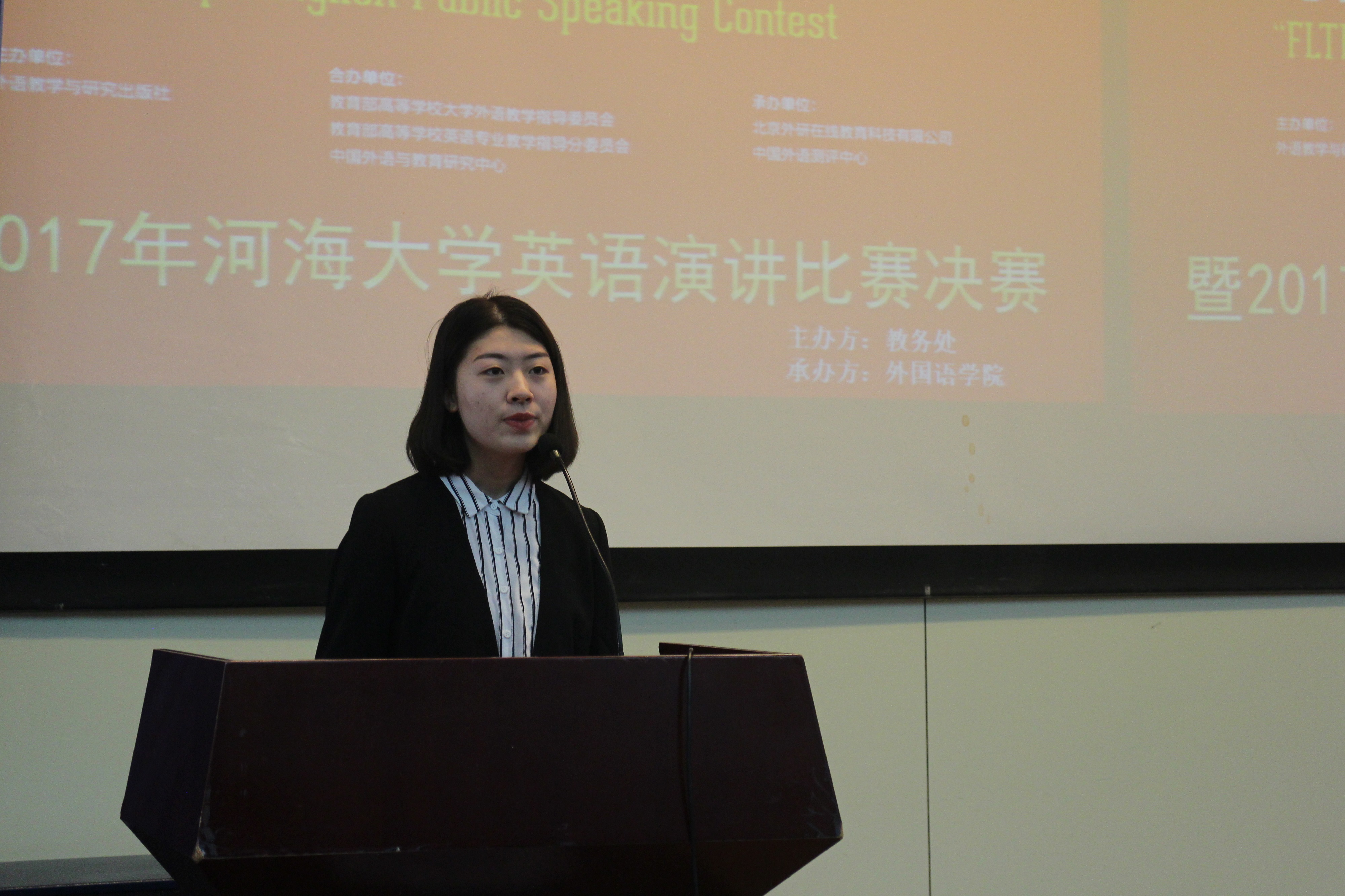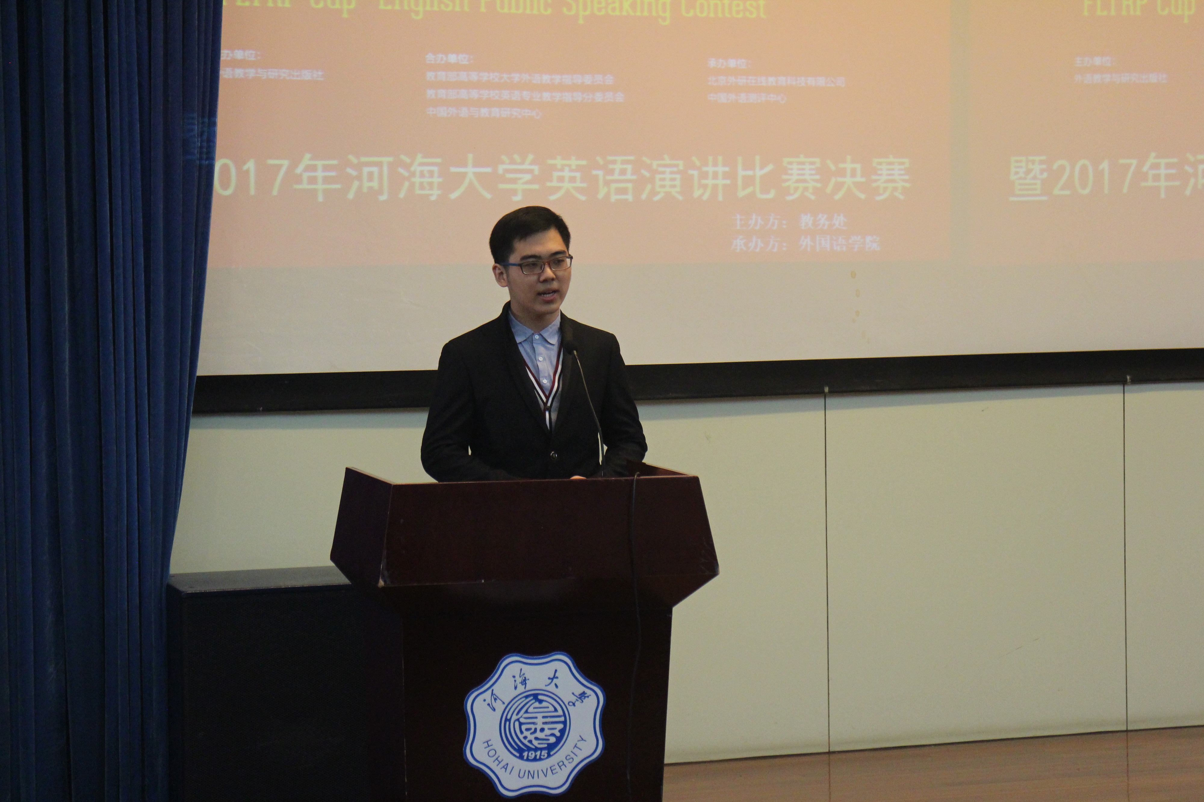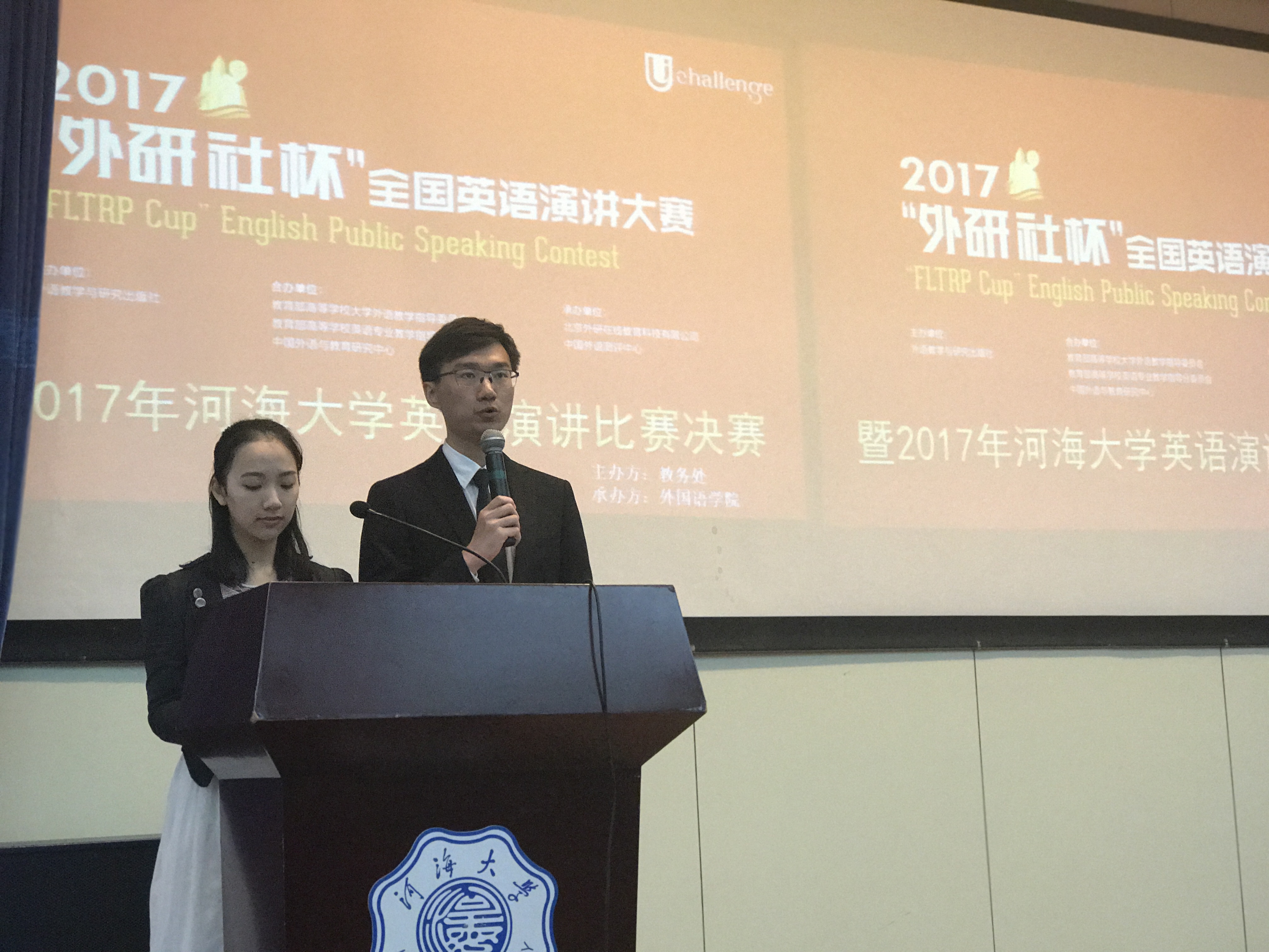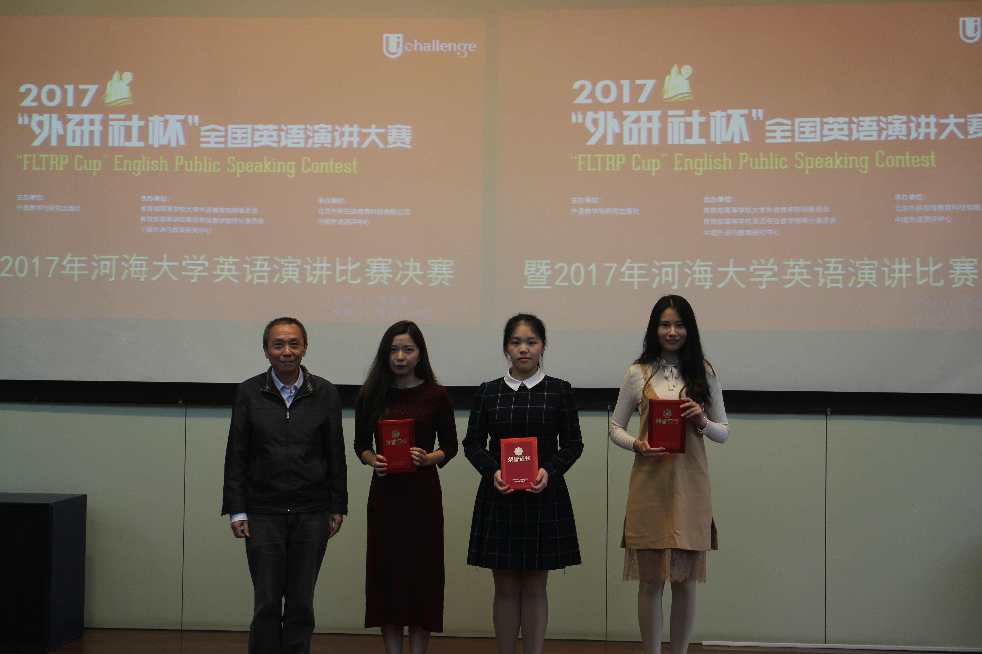 近日,我校成功举办2017年“外研社杯”全国英语演讲大赛开云电竞网选拔赛暨开云电竞网英语演讲比赛。此次大赛由开云电竞网教务处、外语教学与研究出版社主办,开云电竞网外国语学院承办,分初赛和决赛两个环节。开云电竞网教务处阮怀宁处长出席决赛颁奖仪式并致辞。