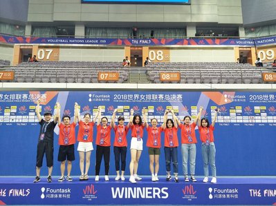 体育展示组、商务拓展组主要负责比赛现场的电子设备播放、吉祥物表演、观众互动、等环节,同学们主动与技术人员对接,认真彩排,有效衔接了比赛中的各个环节,为现场营造出了热情、积极、昂扬的氛围。新闻中心、竞赛联络、VIP服务的同学们则在赛事的幕后默默奉献。新闻中心的志愿者们需要协助组织好每一场赛前赛后中的新闻发布会,引导国外媒体代表开展相关采访,是每天最后一班离岗的团队。而竞赛联络和VIP服务,则需要利用同学们的专业特长,灵活妥善地协助相关人员解决问题。通过此次志愿服务,检验了同学们的外语专业水平,提升了同学们的组织、协调、沟通能力。由于比赛时间紧,任务重,同学们发扬了“团结协作、顽强拼博、永不言弃”的女排精神,在每一个平凡而普通的志愿者岗位上,以高度的大局意识保障了整个赛事的高效运转。