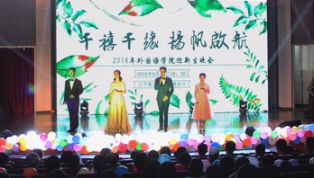 9月28日晚,我院在博学楼报告厅举行了“千禧千缘,扬帆启航”迎新生晚会。外国语学院院长蔡斌教授、党委副书记朱志梅教授、副院长张海榕教授和杨荣华副教授以及教师代表、辅导员出席了此次晚会,共同欢迎2018级新生的到来。