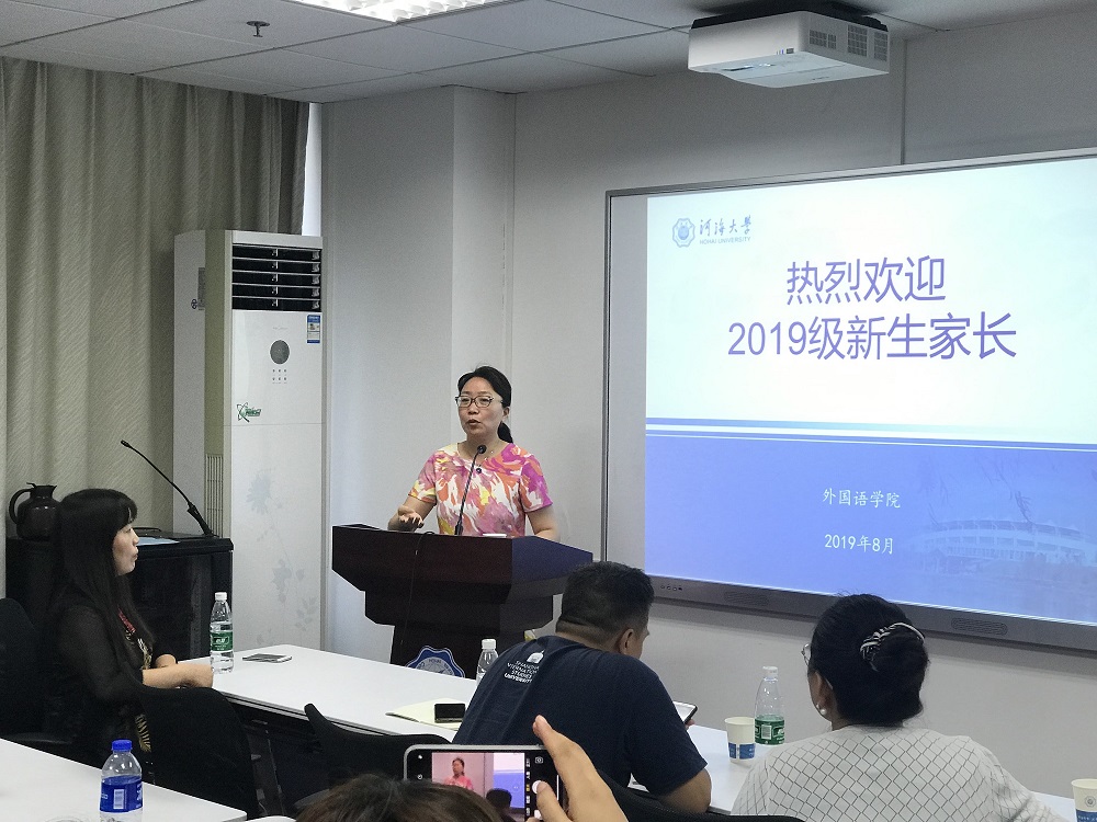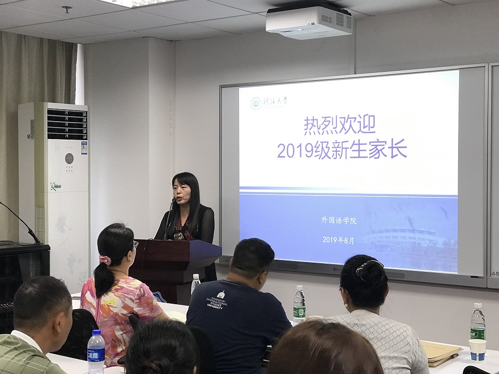 8月24日下午,2019级本科生家长会如期如开。院党委朱志梅副书记、张海榕副院长、英语系主任李霄垅、法语系主任王怡静、团委书记王璐以及60余名家长代表参加了活动。朱志梅副书记对新生家长们的到来表示热烈的欢迎,并感谢家长们对开云电竞网和外国语学院的信任,从学科建设、师资力量、人才培养等方面向家长们介绍了学院特色与发展情况,展示了外院丰硕的教学成果以及外院学子良好的精神风貌。张海榕副院长和与会老师就学院本科教育教学工作进行了详细阐述,并针对家长关心的问题逐一进行了答复。