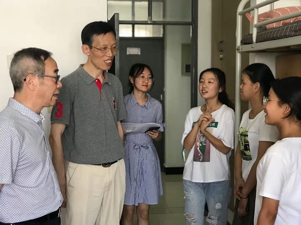 8月24日中午,我院蔡斌院长、院党委雷贵荣书记在19级辅导员王沛然的陪同下,深入学生宿舍看望新生,详细了解学生情况,为他们送去真挚的问候与祝福,希望他们培养独立自主的意识,早日融入大学新生活。
