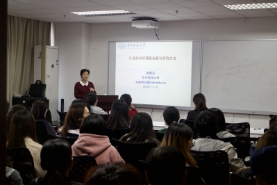 11月13日,华中科技大学徐锦芬教授应邀到我院作了题为“外语类科研课题选题与研究方法”的学术讲座。院长张海榕教授主持讲座。