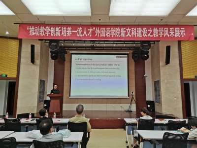 此次教研活动是由教务处、外国语学院共同主办,旨在加强校院协同,发挥学院在教师教学培训工作中的学科专业特色,打造校院两级教师教学培训体系,进一步促发老师们在一线教学中以赛促教、以赛促学,积极探索外语教学新思路,实践外语教学改革新要求的能力。(钱婧)