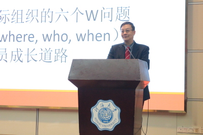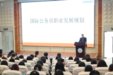 李根信司长结合自己多年国际组织工作经验,重点讲授“立志篇:中华民族复兴和家国天下观、中国培养国际组织人才的重要性必要性可行性紧迫性”“准备篇:走进国际组织的六个W问题”“实现篇:国际职员成长道路”三部分内容。他从国际组织重要性、国际组织人才建设国家战略、中国参与国际组织面临的问题和挑战、国际组织人才的基本素质和能力等方面为同学们深入浅出地讲解。他指出,近年来,随着我国经济实力和综合国力的提升,我国在世界舞台上扮演着越来越重要的角色。然而面临的难题是缺少能在国际组织任职的优秀人才。他鼓励同学们加强专业学习,打开思路和眼界,以到国际组织实习任职为目标,立志代表祖国出现在国际舞台上,为提升国家形象和维护国家利益贡献力量。