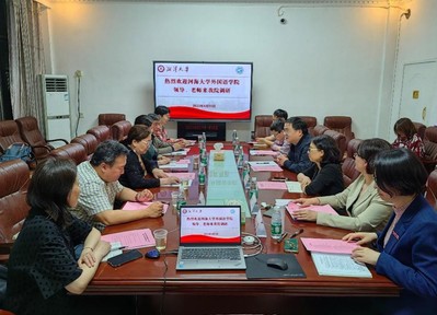 415日,张海榕院长带队一行来到湘潭大学外国语学院调研和交流。双方就学科建设、专业建设、本科培养方案修订、科学研究、青年教师培养、学生培养和语音室建设等方面展开交流。湘潭大学外国语学院党委书记李峰主持会议。