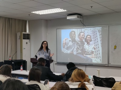 奥尔加·库卡仁科教授在讲座的第一部分回顾了俄罗斯与非洲自12世纪以来的早期交往,并为在场师生分享了俄罗斯经典文学片段中的非洲书写。