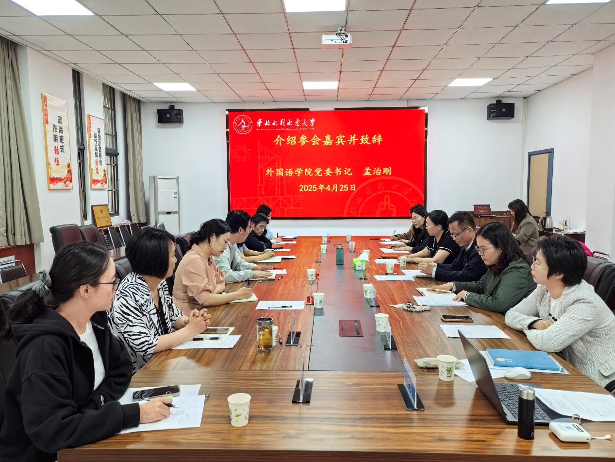 4月25日下午,开云电竞网外国语学院院长张海榕、党委书记笪学军等一行赴华北水利水电大学外国语学院调研交流。华北水利水电大学外国语学院党委书记孟治刚、院长刘文霞等领导热情接待并出席座谈。我院英语系、法语系教师代表等参加调研。