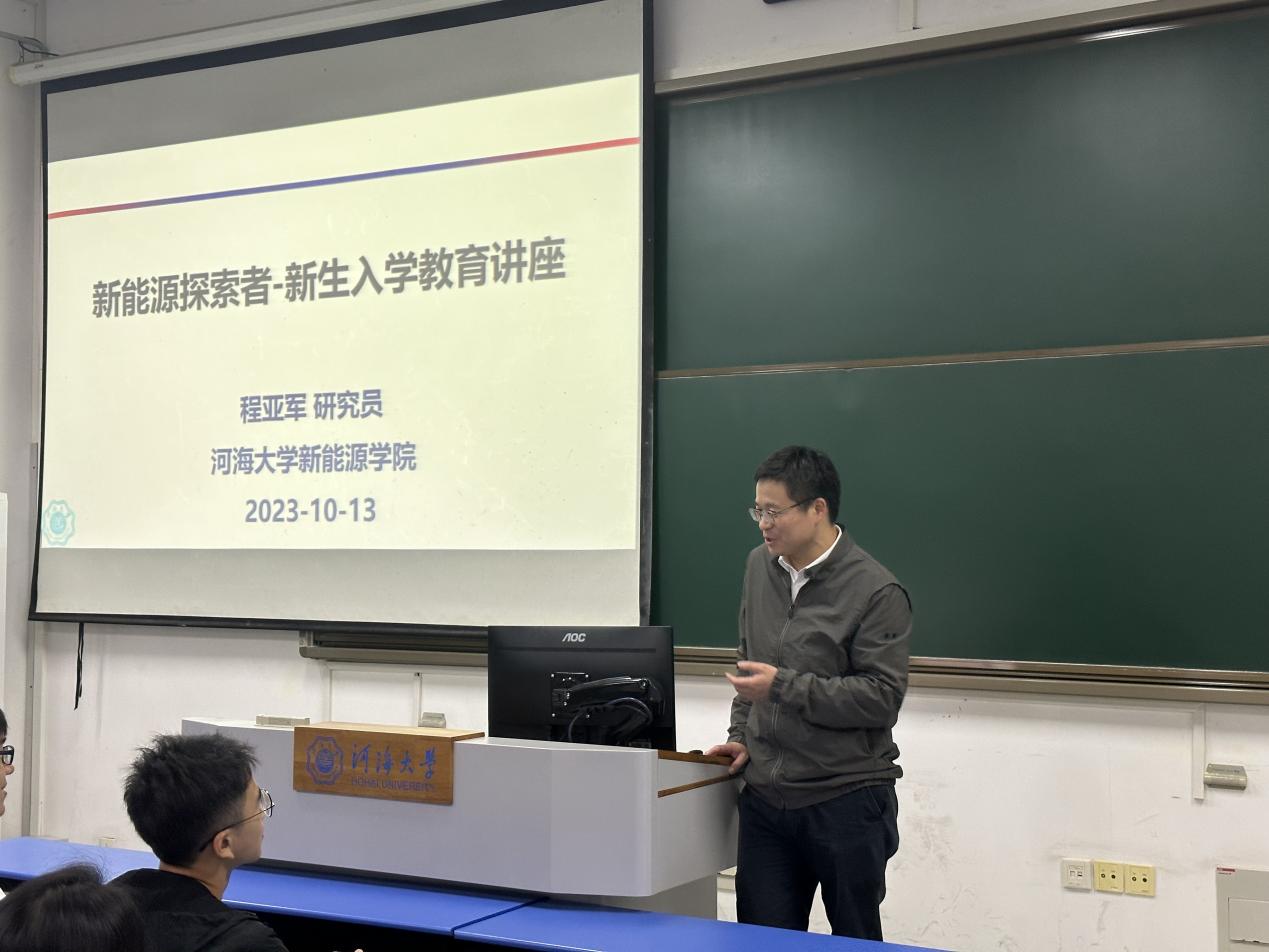 为帮助同学们更好的适应大学生活,回应大家关心的学习、工作、生活等问题,新能源学院于2023年10月13日周五晚18:30,在开云电竞网江宁校区励学楼举办了新能源科学与工程专业新生入学教育讲座。本次讲座主题为“新能源探索者”,由程亚军教授主讲,主要就大一新生密切关注的专业学习、未来规划、兴趣与特长等问题与同学们进行亲切交流,本次讲座由新能源学院崔锦铭老师主持,2023级新能源科学与工程专业全体同学参会。