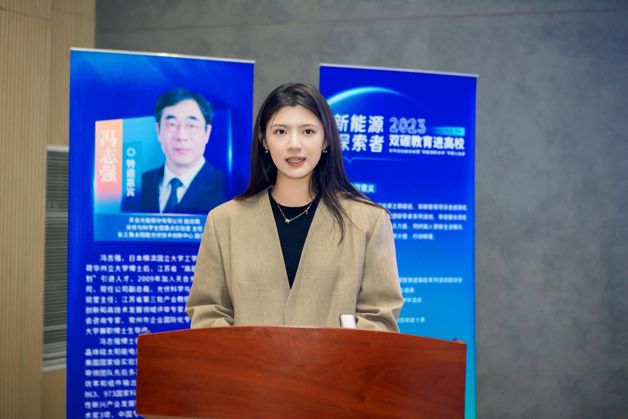 常州市新北区棵林环境保护协会副理事长吴钰涵为同学们系统地介绍了本次双碳教育进高校系列活动的总体安排和具体内容,并表示:双碳教育项目走进高校,将进一步落实推进双碳知识的普及,融入创新实践,有效整合高校、企业,以及各类社会资源,加强良性互动,形成助力双碳目标的人才梯队。