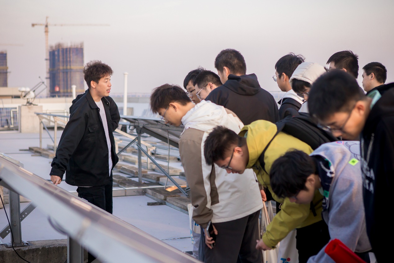 会后,新能源学院23级全体学生参观了新能源学院楼内实验室和楼顶光伏设备。