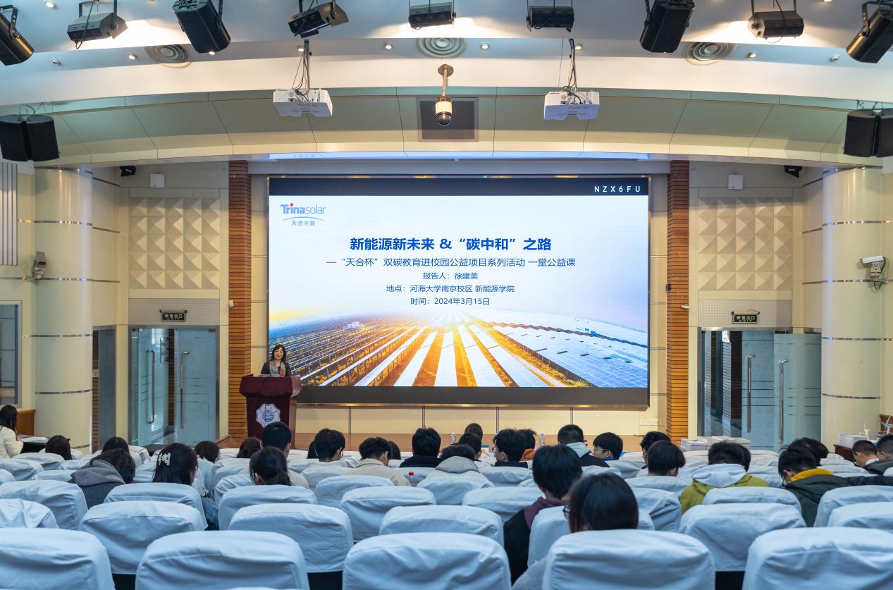 表彰会后,教授级高级工程师、长三角光伏技术创新中心光伏应用研究所所长徐建美带来“新能源,新未来”主题公益课,从全球气候现状和应对措施、我国碳中和之路、能源变革和新能源、身边的低碳行动四个方面,让学生对新能源、新未来有了更加深刻的理解和认识。