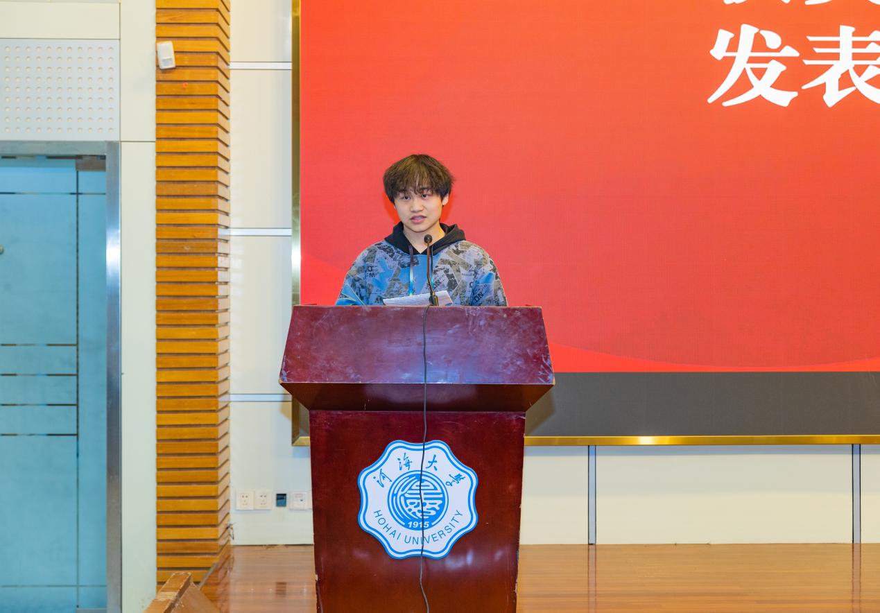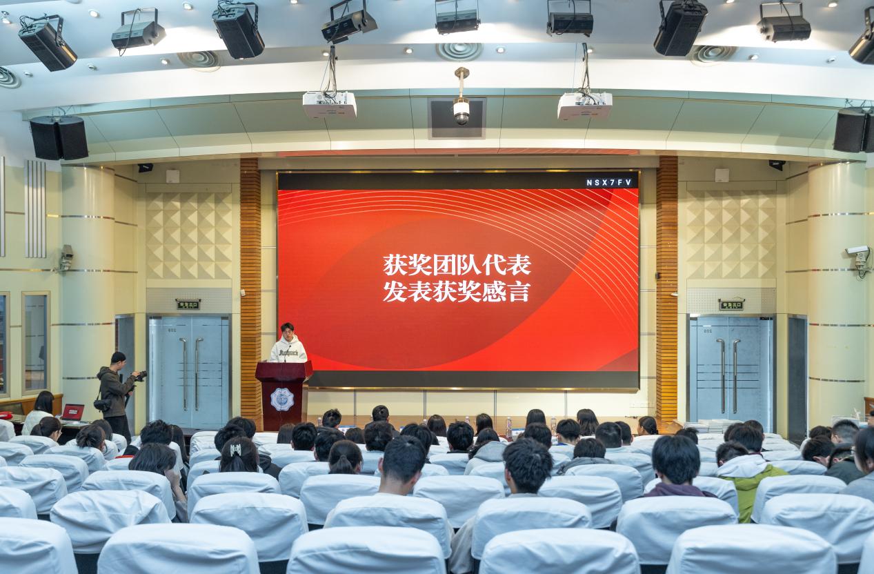 获光伏赛道一等奖团队代表赛俞民同学上台分享参加比赛后的感悟与收获,并对新能源学院表示祝福。
