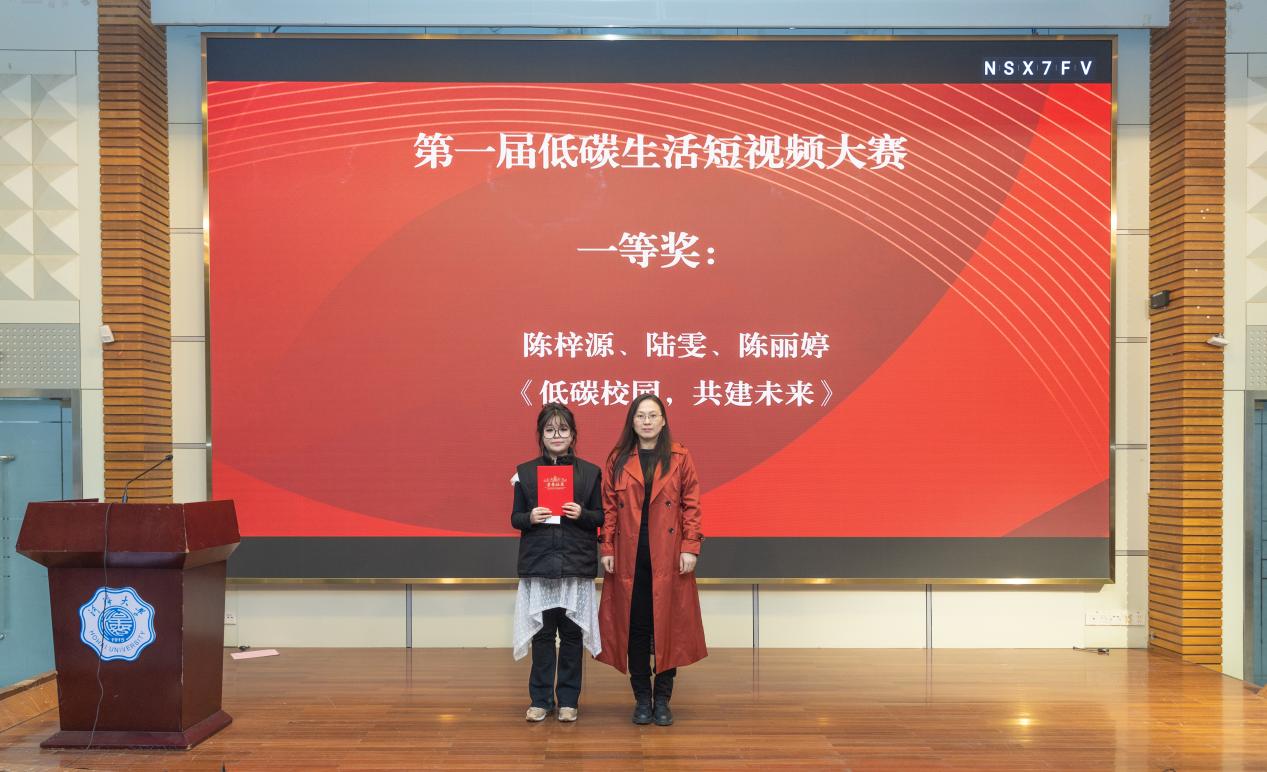 颁奖嘉宾为第一届低碳生活短视频大赛获奖团队代表颁发获奖证书和奖品。