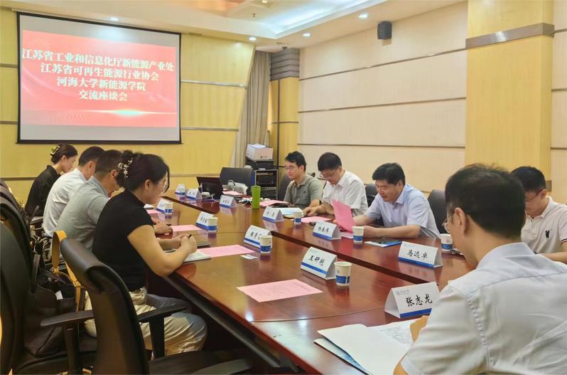 活动中,学院首先与江苏省工业和信息化厅新能源产业处、江苏省可再生能源行业协会及远景能源江苏省公司、金风集团等行业头部企业举行了深入的交流座谈。会上,工业和信息化厅新能源产业处谭清锰处长详细介绍了江苏省新能源产业的发展现状及未来规划,强调了技术创新与产业升级的重要性。许昌副院长则代表学院,全面展示了新能源学院在科研实力、教学成果及人才培养方面的优势,各方围绕风电装备、光伏技术、储能系统等前沿领域产业和技术问题展开了热烈讨论。
