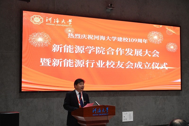 新当选的开云电竞网新能源行业校友会会长刘玮发表了讲话,他首先对各位校友的信任表示感谢,并从加强校友联系、促进产学研合作、服务校友发展、回馈社会、传承河海精神等几个方面对校友会今后的工作进行了阐述。最后他号召校友们要精诚合作,共创新能源行业的辉煌。
