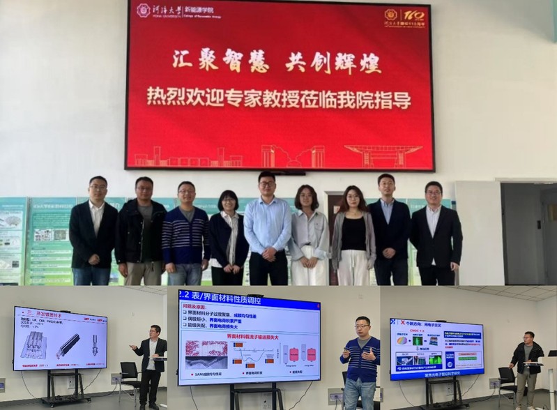 2025年4月14日,学院举行了一场钙钛矿领域高水平学术交流活动。应学院丁勇教授邀请,四川大学赵德威,北京航空航天大学罗德映,北京大学赵丽宸,中国科学院国家纳米中心邓丹,南京大学林仁兴,苏州大学王照奎,深圳市捷佳伟创新能源装备股份有限公司盛江,山西煤研所张文媛等教授专家一行莅临学院开展学术交流。学院党委书记杨春伟,副院长白建波、程亚军教授出席本次论坛。杨春伟书记致欢迎辞,对各位专家的莅临表示热烈欢迎,并重点介绍了学院在科研平台建设方面的未来规划,以及在新能源领域,尤其是在太阳能光伏、储能和多能互补利用等方向取得的最新研究进展。