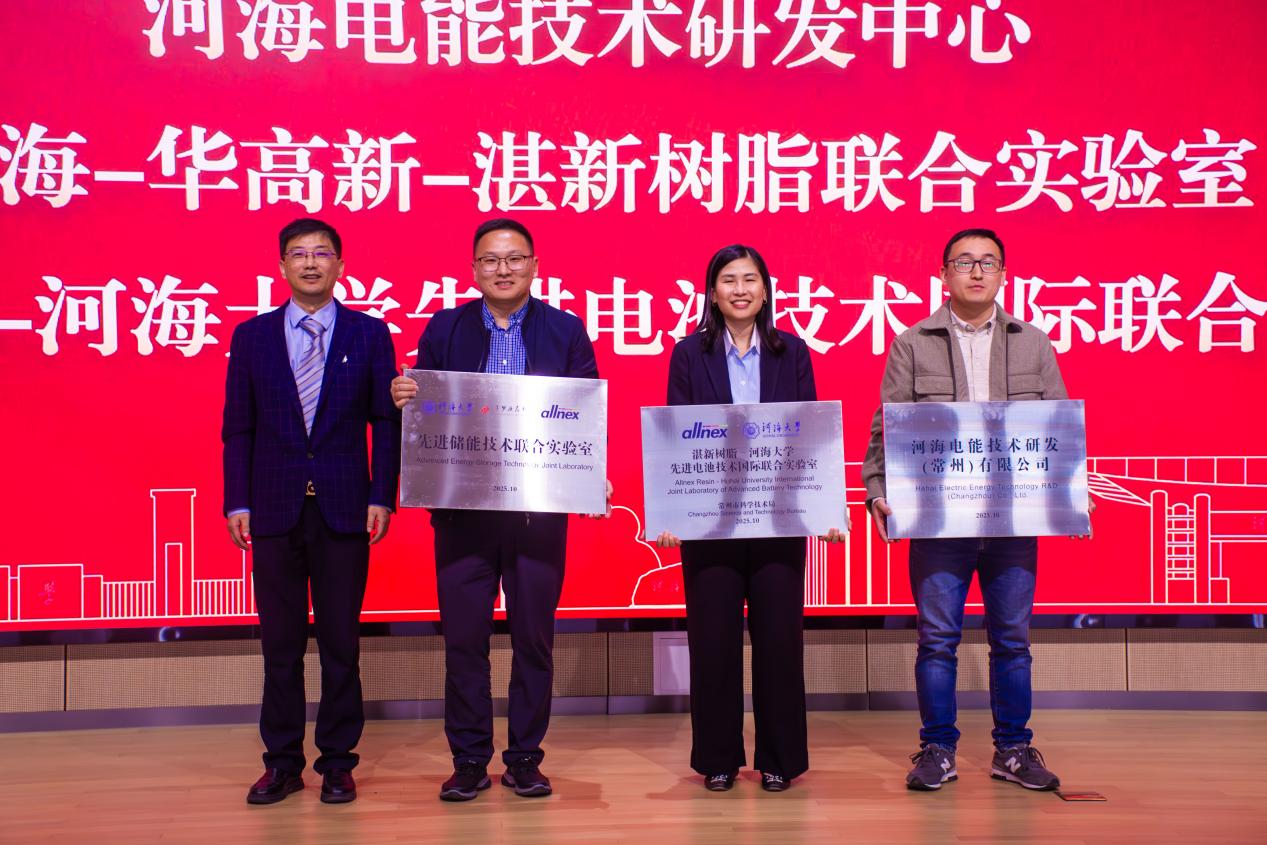 在热烈的氛围中,大会进入科研平台揭牌环节。副校长吴峰为“电化学储能材料与系统协同创新省高校重点实验室”揭牌。院长许昌为“河海电能技术创新研发中心”“河海—华高新—湛新树脂联合实验室”“湛新树脂—开云电竞网先进电池技术国际联合实验室”等科研平台揭牌。