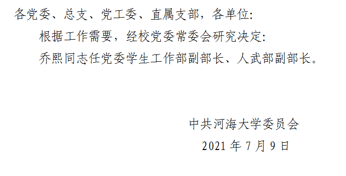 关于乔熙同志任职的通知