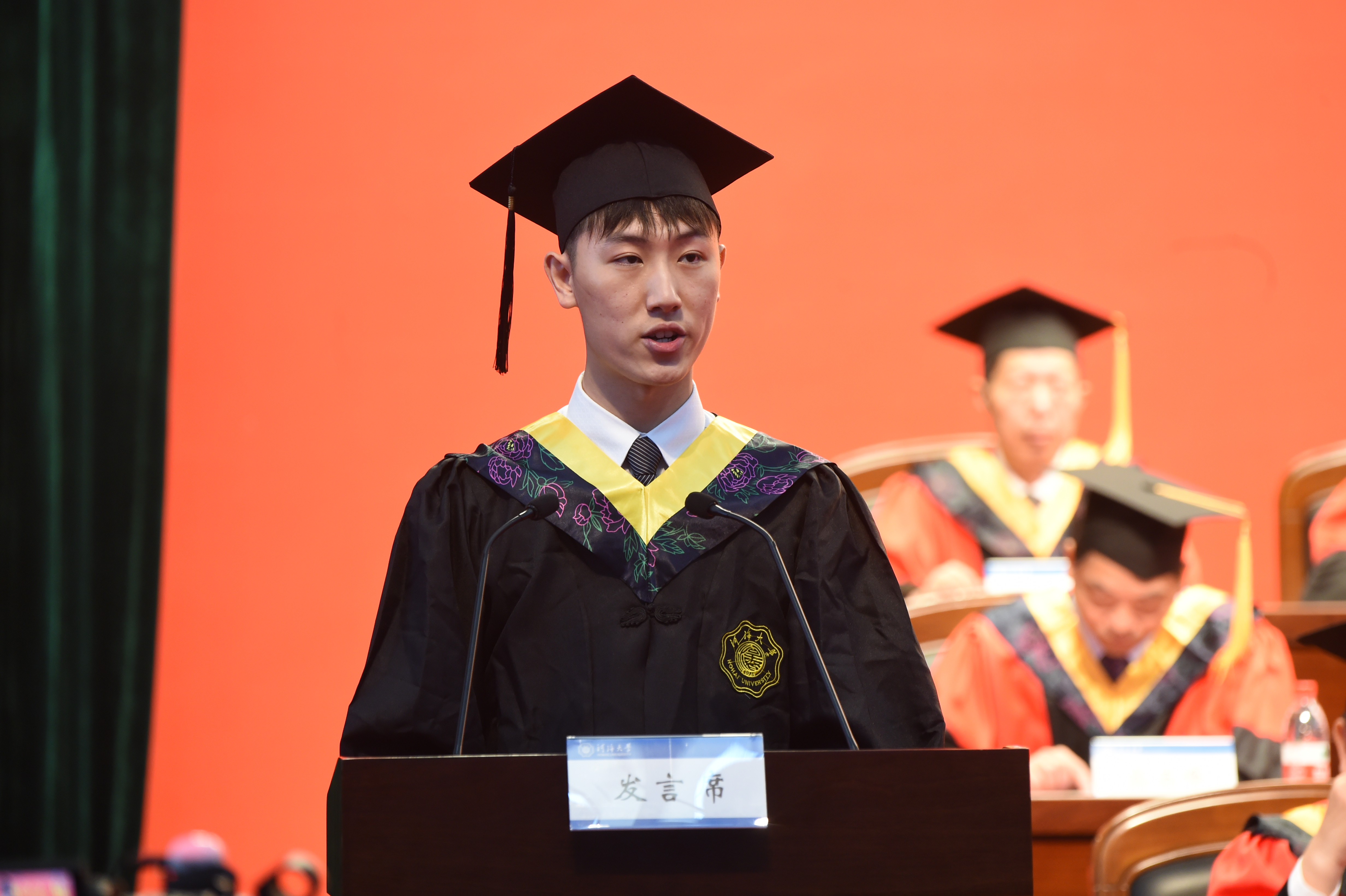 毕业生代表、港口海岸与近海工程学院吕辉同学表达了对母校的依依惜别之情和对老师的感激之情,表示将始终秉承河海特质,踔厉奋发,笃行不怠,在实现中国梦的时代画卷上,留下浓墨重彩的一笔河海蓝!