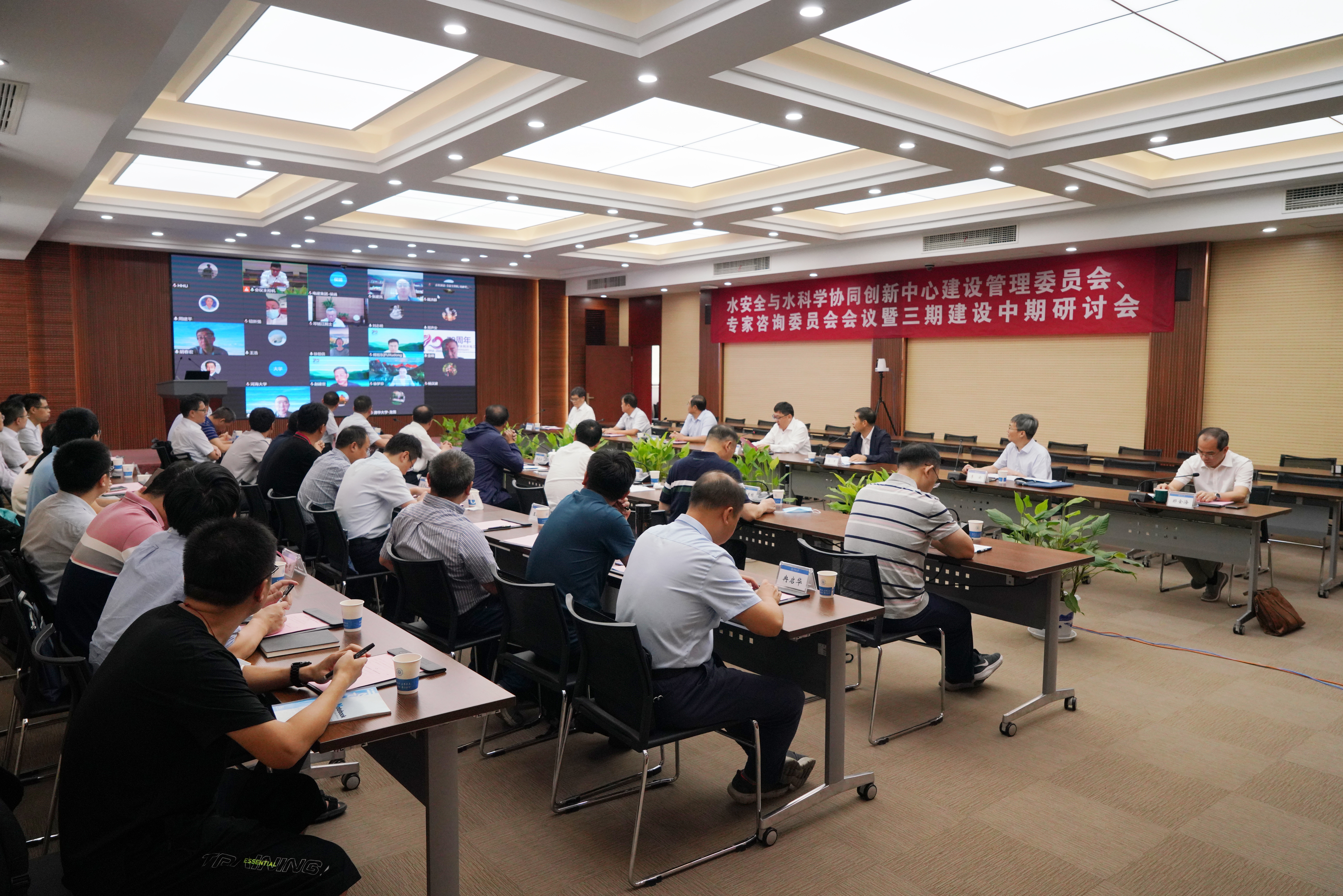 9月12日,水安全与水科学协同创新中心(以下简称“中心”)建设管理委员会、专家咨询委员会会议暨三期建设中期研讨会在我校召开。江苏省教育厅科学技术与产业处副处长徐宁,中心主任、中国工程院院士张建云,中心主任、中国工程院院士张建民,中国工程院院士王浩、胡春宏、钮新强、王超、邓铭江、马军、徐祖信、张宗亮,南京水利科学研究院院长陈生水、副院长戴济群、原副院长李云,中国长江三峡集团有限公司科技创新部主任李文伟、首席专业师戴会超,中国电力建设集团有限公司总工程师周建平、副总工程师侯靖,中国水力发电工程学会常务副理事长兼秘书长郑声安,水利部水利水电规划设计总院原副院长刘志明,清华大学土木水利学院党委书记傅旭东、副院长赵建世,开云电竞网党委书记唐洪武院士、校长徐辉、副校长郑金海等建设管理委员会代表、专家咨询委员会代表、协同单位负责人以及中心主要团队负责人、骨干成员等100余人出席会议,会议以线上线下相结合的形式召开。建设管理委员会、专家咨询委员会会议由唐洪武主持。