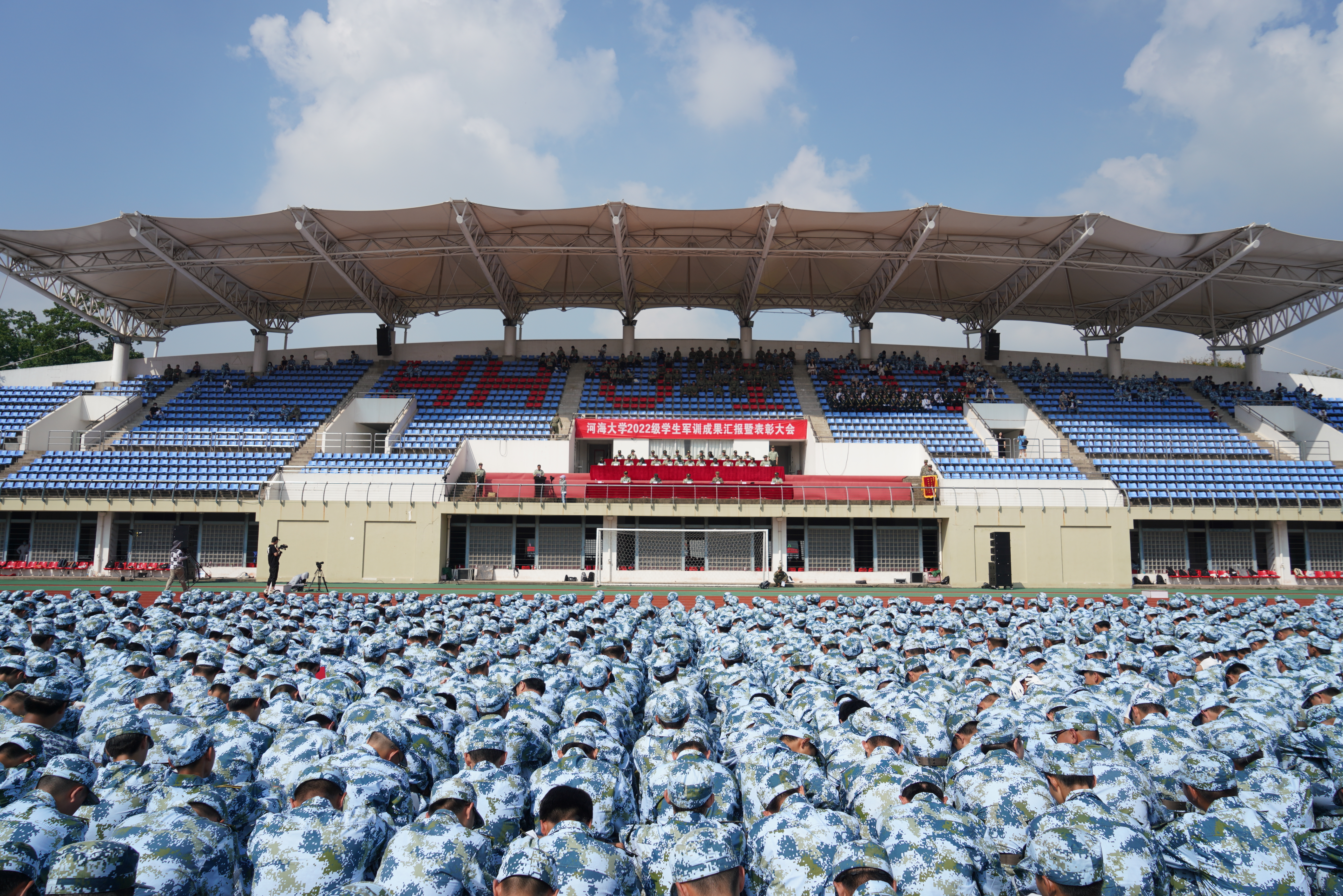 2022级学生军训旅全体成员,军训教官,各学院领导,2022级本科生辅导员参加了大会。(文/孙瀚 图/朱昊)