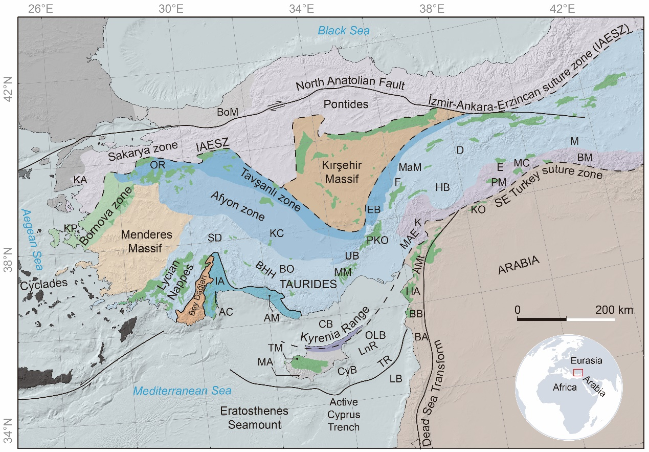 Chen, G., Robertson, A. H., & Wu, F. Y. (2022). Detrital zircon geochronology and related evidence from clastic sediments in the Kyrenia Range, N Cyprus: Implications for the Mesozoic-Cenozoic erosional history and tectonics of southern Anatolia. Earth-Science Reviews, 233, 104167. doi: /10.1016/j.earscirev.2022.104167.