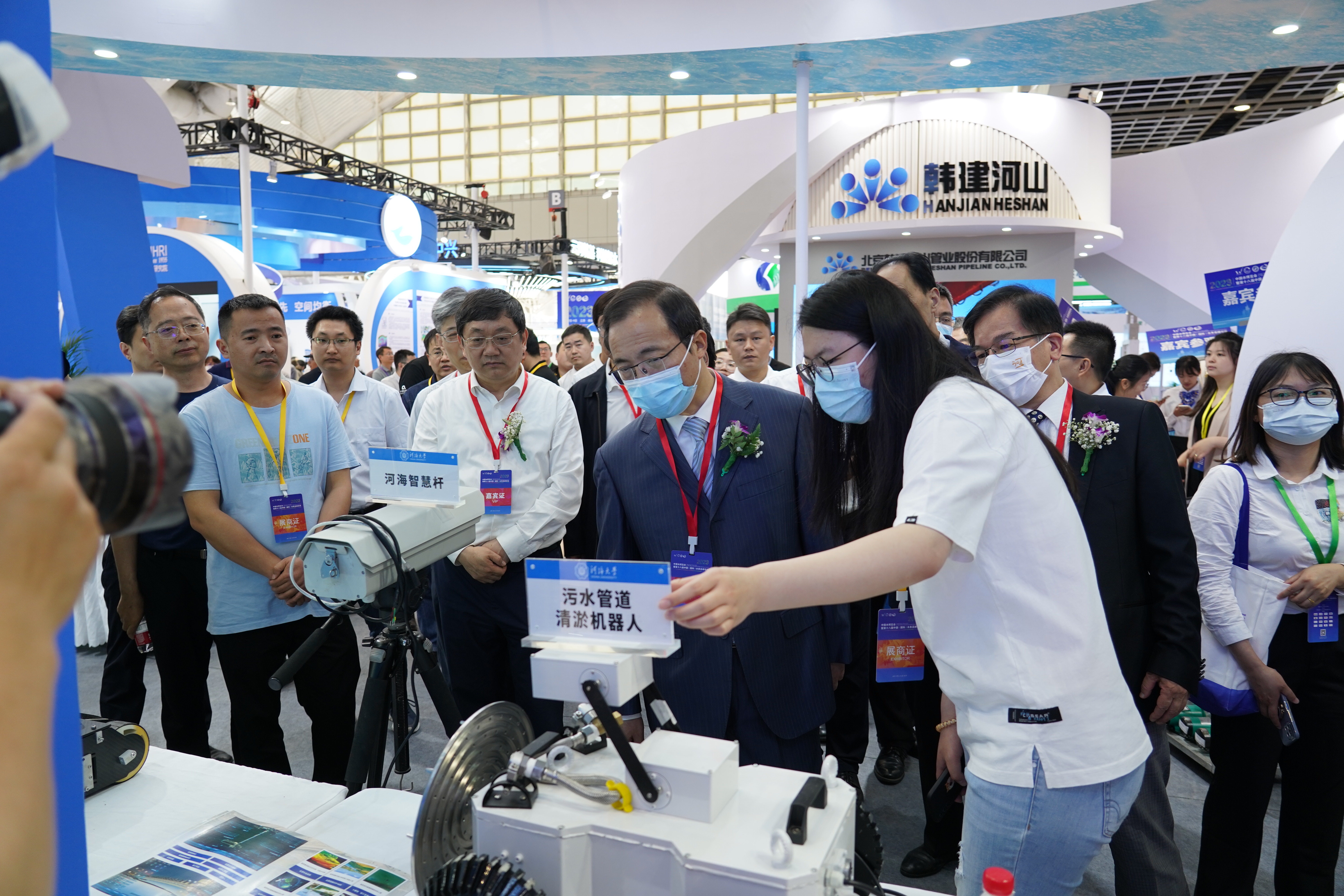 本次水博览会,学校精心遴选参展的全球水文仿真与智能分析系统、输水廊道缺陷检测系统、爬壁机器人、苦咸水淡化设备、机器视觉智能测量系统、河海智慧杆、污水管道清淤机器人、水质光谱在线监测与预警技术等亮点云开电竞app下载地址收获了极高的关注。水利部原副部长、应急管理部原副部长周学文等领导也亲临开云电竞网展位参观指导。