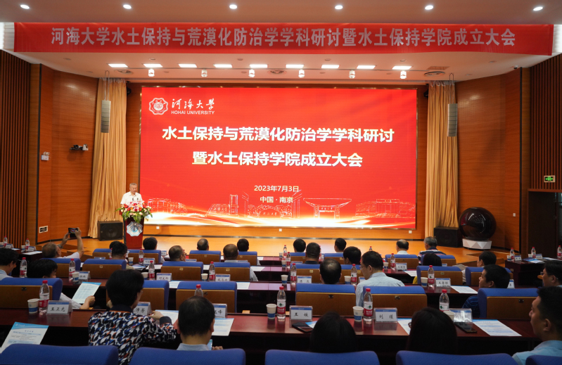 73日,我校举行水土保持与荒漠化防治学学科研讨暨水土保持学院成立大会。中国水土保持学会副理事长、中国工程院院士胡春宏,水利部水土保持监测中心副主任乔殿新,江苏省水利厅副厅长喻君杰,中国水土保持学会副理事长兼秘书长、北京林业大学副校长张志强,南方水土保持研究会理事长、南昌工程学院原党委书记金志农,南京林业大学原副校长张金池以及来自西北农林科技大学长江科学院水土保持研究所黄河水利科学研究院水土保持研究所中国科学院水利部水土保持研究所中国科学院南京土壤研究所江苏省水利厅政府部门、兄弟院校、相关科研院所及企事业单位的专家、领导出席大会校党委书记、中国工程院院士唐洪武,校长杨桂山,校党委副书记、纪委书记孟新以及学校有关单位负责人、师生代表等参加活动。校常务副校长李俊杰主持大会