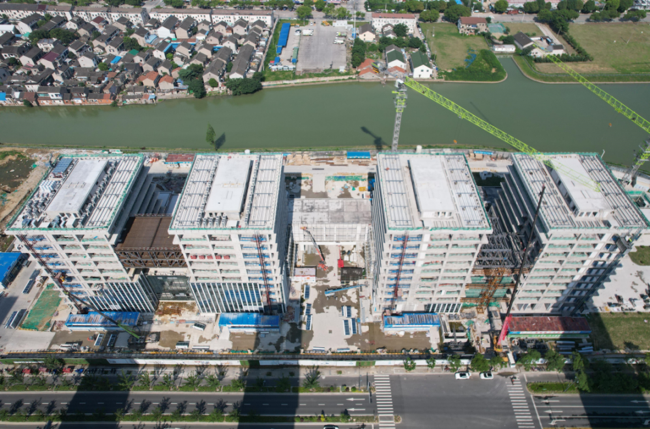 苏州研究院载体总占地面积约117亩,其中研究院大楼占地47.7亩,建于苏州市相城区元和街道宣公路东、黄蠡路南,设有科研中心、教学中心、转化中心和产业中心四栋建筑。研究院大楼于2022年4月开工建设,克服疫情等困难,争分夺秒抓进度,已于今年5月全面封顶,现今主体工程完成验收。此外,苏州研究院师生公寓和运动场地等配套设施的前期设计工作已完成,近期即将启动建设。