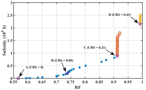 可再生能源系统规划设计通常从项目投资者角度考虑建成后的系统运行调度对规划设计的反馈,但少有研究从政府决策者角度考虑能源政策层面与规划设计的影响机理。为促进离网地区的可再生能源低碳化供电,从政府角度提出了一种碳减排补贴政策促进可再生能源发电技术部署,并研究了能源政策与电力系统规划设计的相互影响机理与协同优化问题,结果表明所提出碳减排补贴政策可提高可再生能源供电比例至99.23%,并有效减少80.7%的碳排放(该成果已发表于Energy,2023,262:125454)。