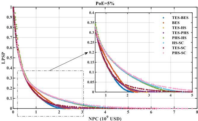 图2 含不同联合储能的可再生能源多能互补发电系统技术经济性比较