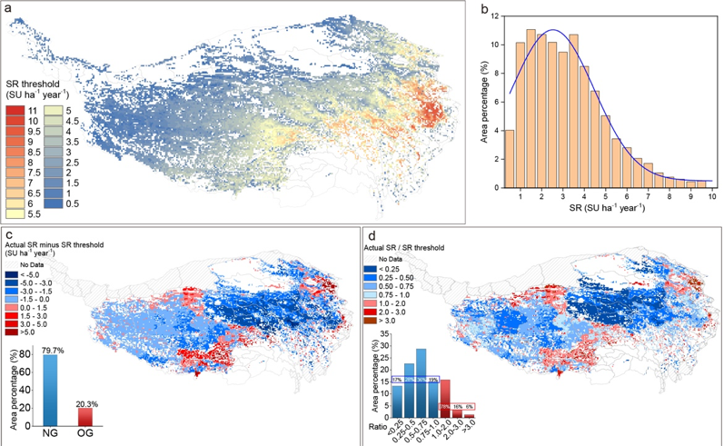 (3)平衡放牧需求和气候变化的积极效应,研究团队提出实际放牧强度应不超过极端放牧强度阈值的60%(区间:50%-70%),建议降低当前过度放牧区的放牧强度,部分地区(尤其是青藏高原西北地区)采取禁牧措施。