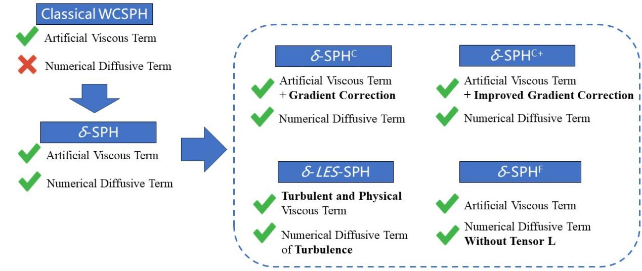 图1 本研究测试的多种改进SPH模型的特性对比