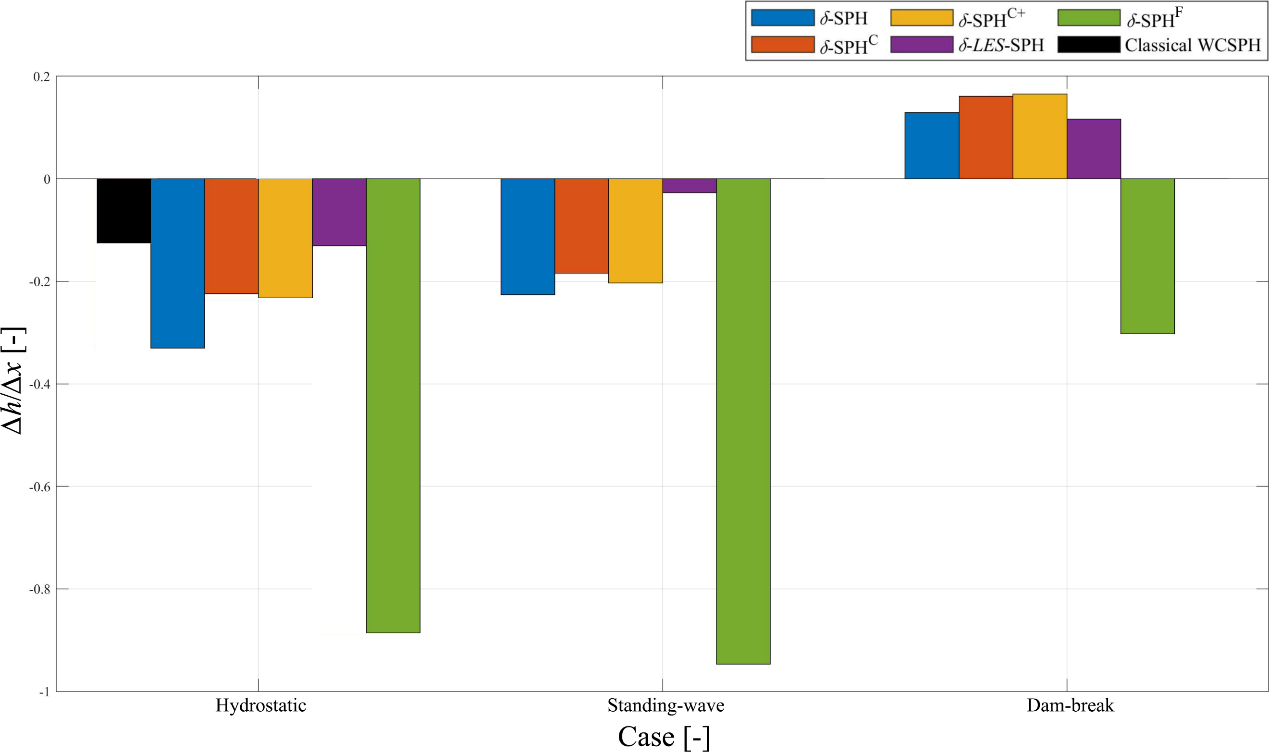 研究发现,在测试的模型中,δ-LES-SPH模型具有最好的体积守恒性,δ-SPHF模型的体积守恒性需要增强,对此本研究对该模型提出了新的数值改进,其它模型在分辨率较高的情况下其体积守恒性满足长时间尺度的应用需求。
