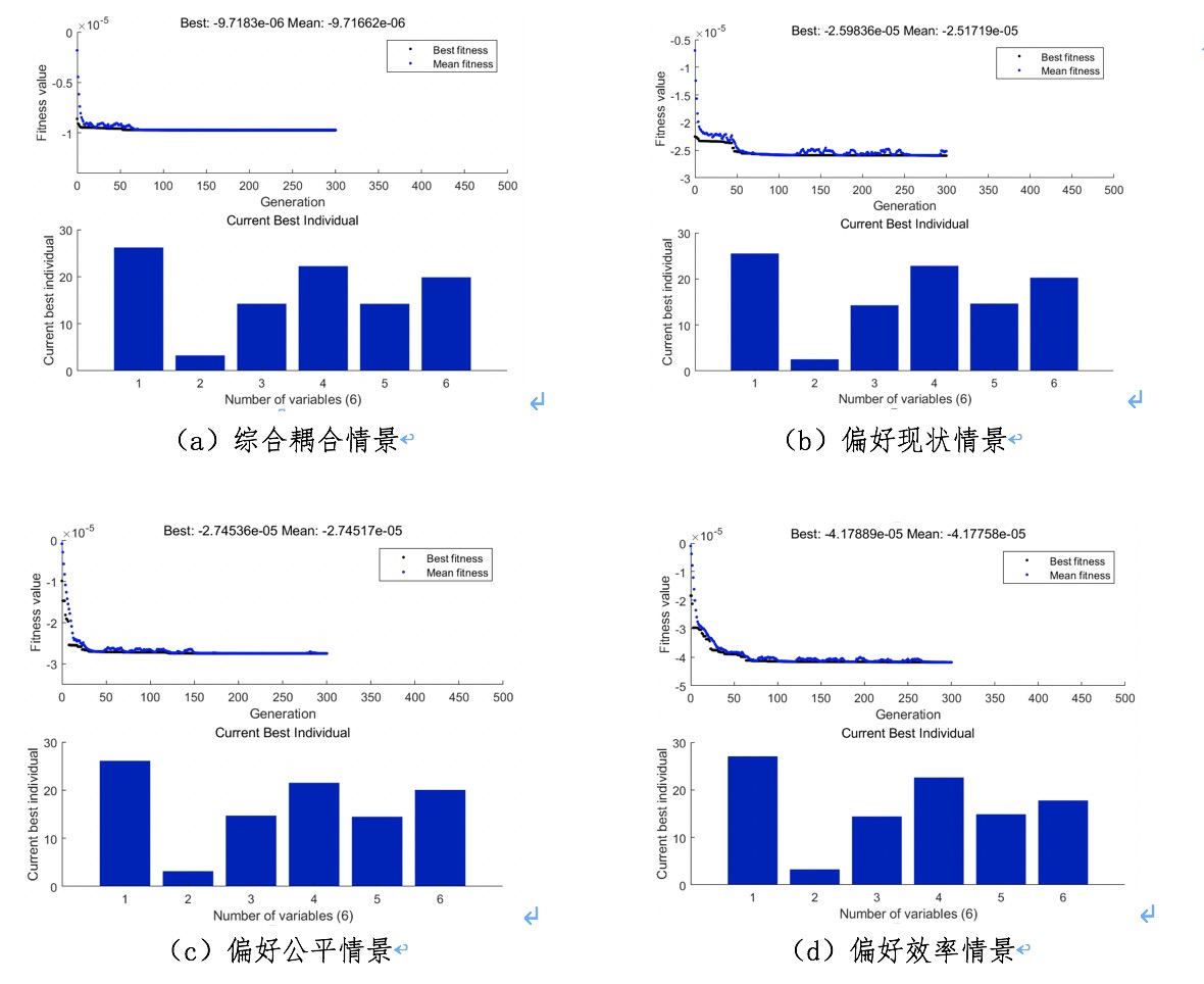 图1 不同情景下的优化迭代过程及结果